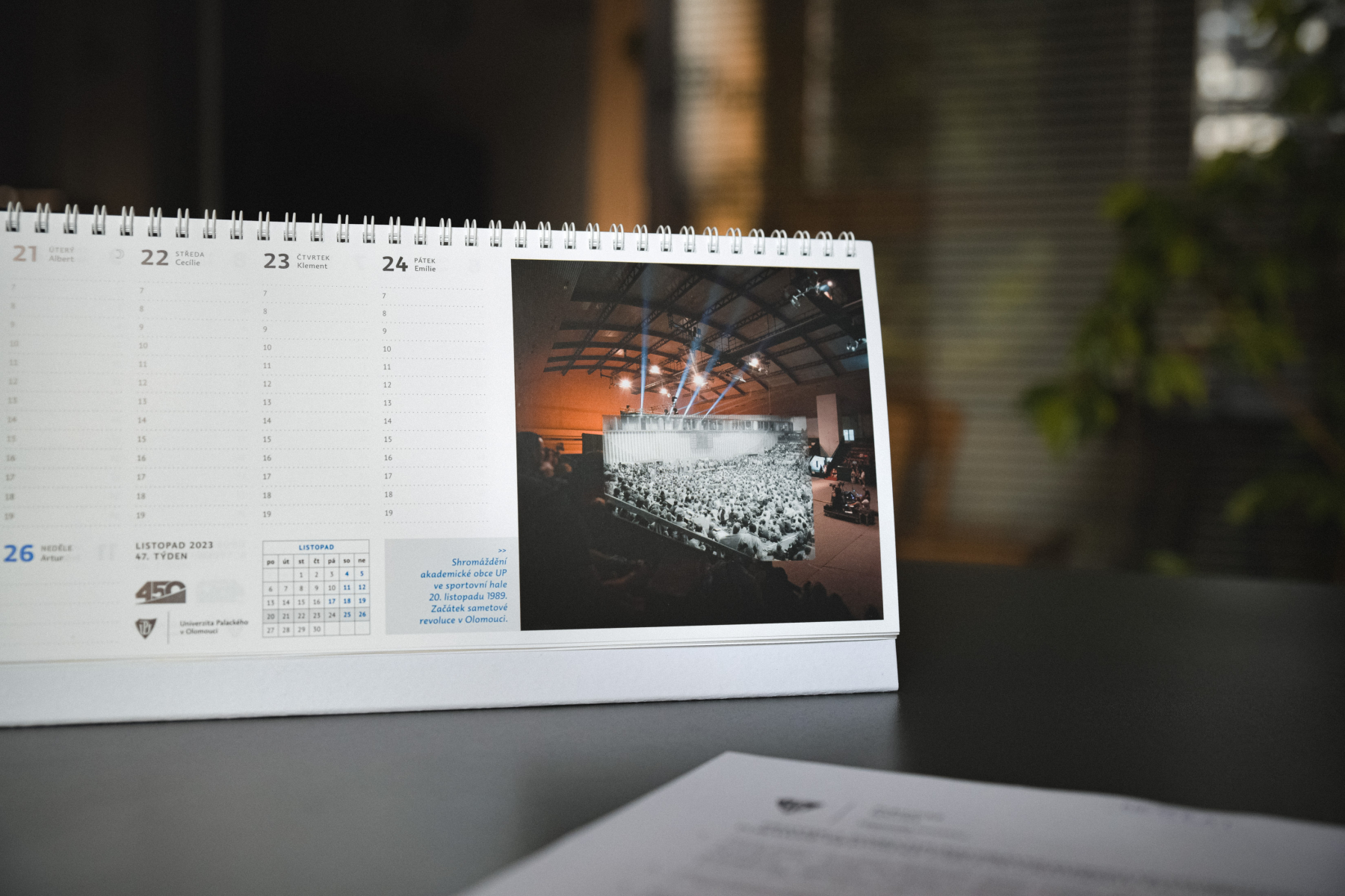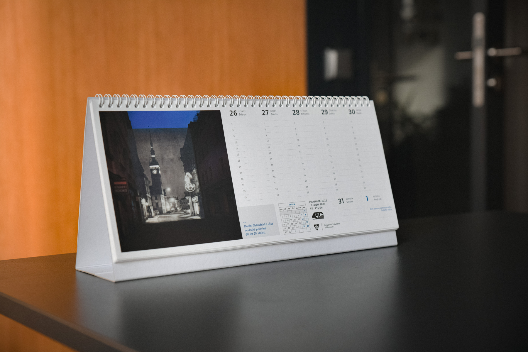 V příštím roce oslaví Univerzita Palackého půlkulatých 450 let od svého vzniku. Při této vzácné příležitosti vydáváme speciální kalendáře s fotografickými kolážemi, které ilustrují novodobé dějinné proměny UP a zároveň proměny jejího univerzitního města. V příštím „jubilejním“ roce tak bude moct pohled na vaše týdenní plány zároveň zdobit pohled do slavné historie Olomouce. Přijďte si k nám na prodejnu tu krásu prolistovat!