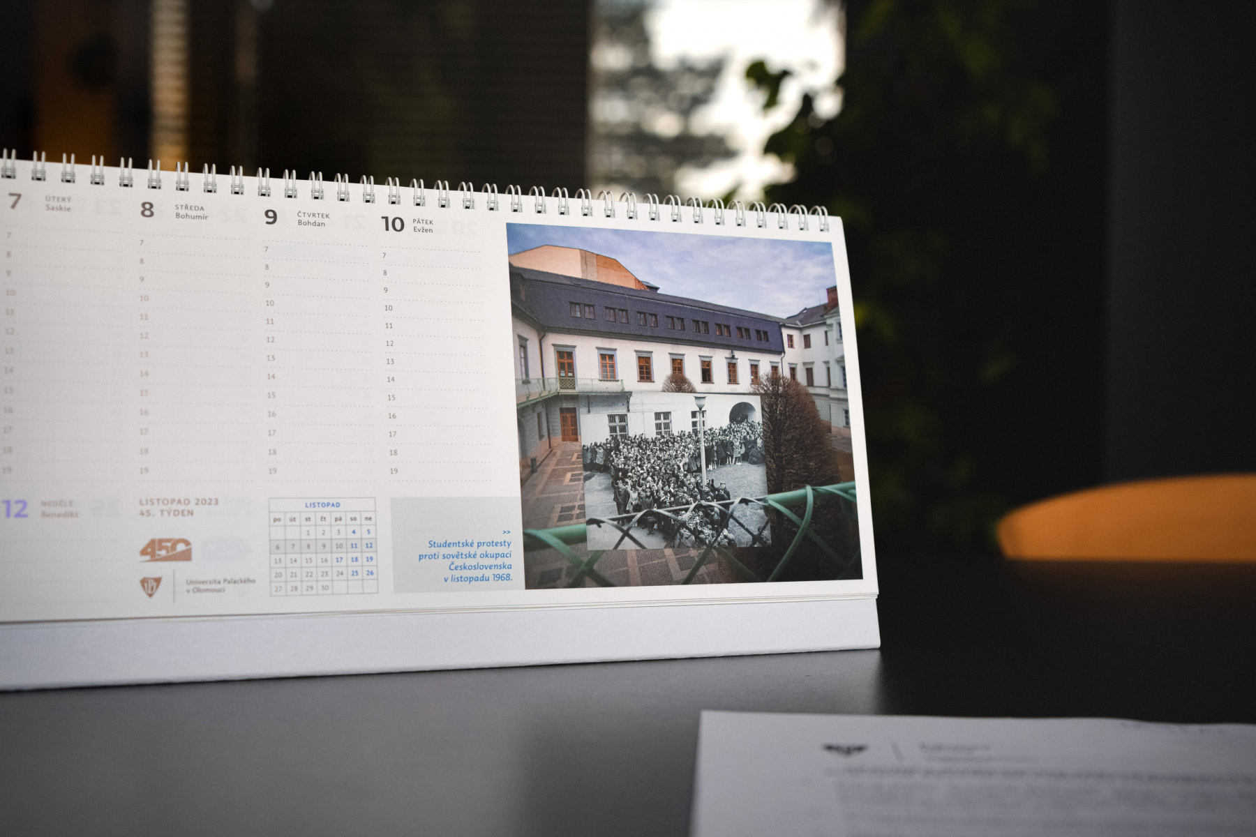 V příštím roce oslaví Univerzita Palackého půlkulatých 450 let od svého vzniku. Při této vzácné příležitosti vydáváme speciální kalendáře s fotografickými kolážemi, které ilustrují novodobé dějinné proměny UP a zároveň proměny jejího univerzitního města. V příštím „jubilejním“ roce tak bude moct pohled na vaše týdenní plány zároveň zdobit pohled do slavné historie Olomouce. Přijďte si k nám na prodejnu tu krásu prolistovat!