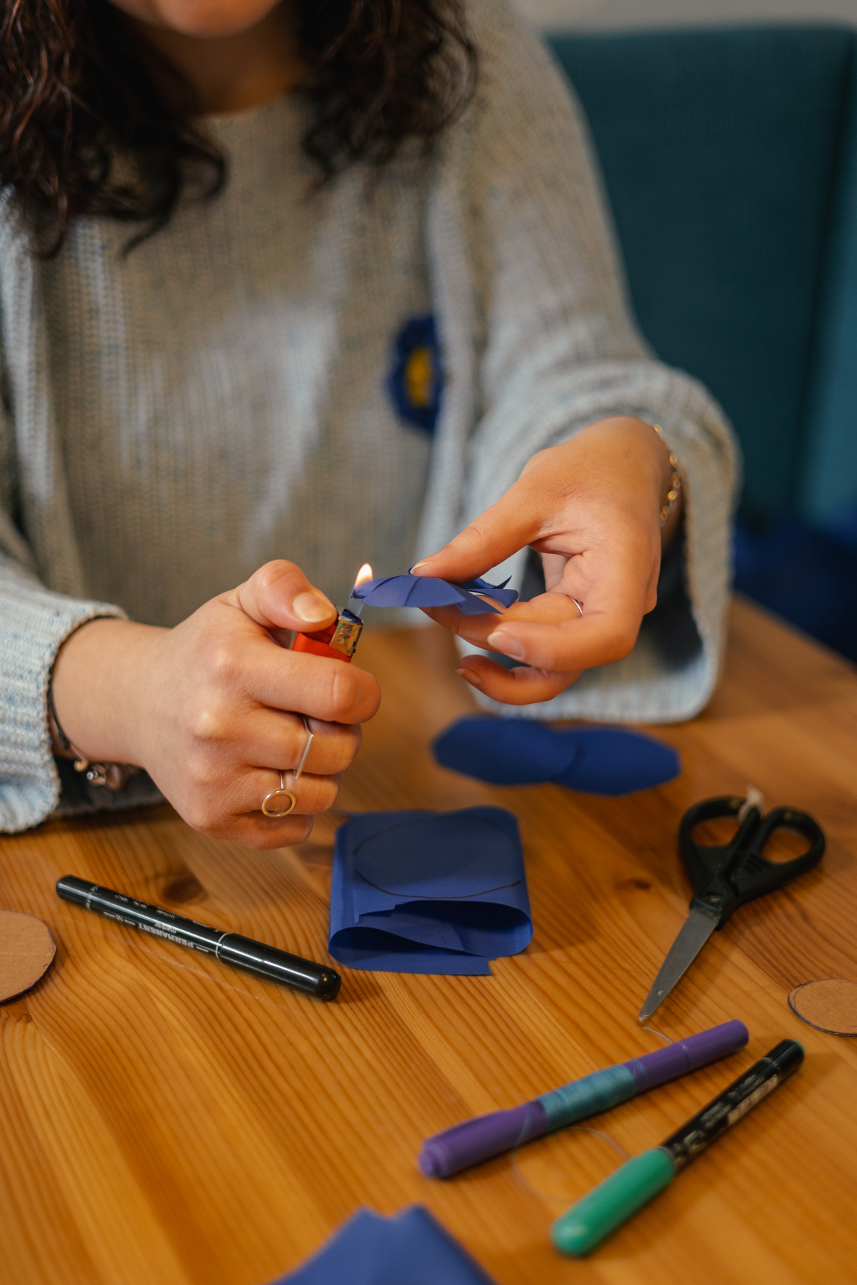 Y: Výroba jedné květiny trvá asi patnáct minut. Je to ale velmi individuální, protože někdo potřebuje méně času, někdo zase více. Hodně by nám pomohlo, kdyby se k výrobě těchto květin připojili i dobrovolníci, pro které jsme natočili výukové DIY video. Vyrobené květiny by pak mohli donést přímo do UPointu. V tuto chvíli každodenně s napětím sledujeme ve zprávách dění na Ukrajině a myslím, že relax u manuální práce nikomu neuškodí a ještě tak pomůže s výrobou květin na prodej.