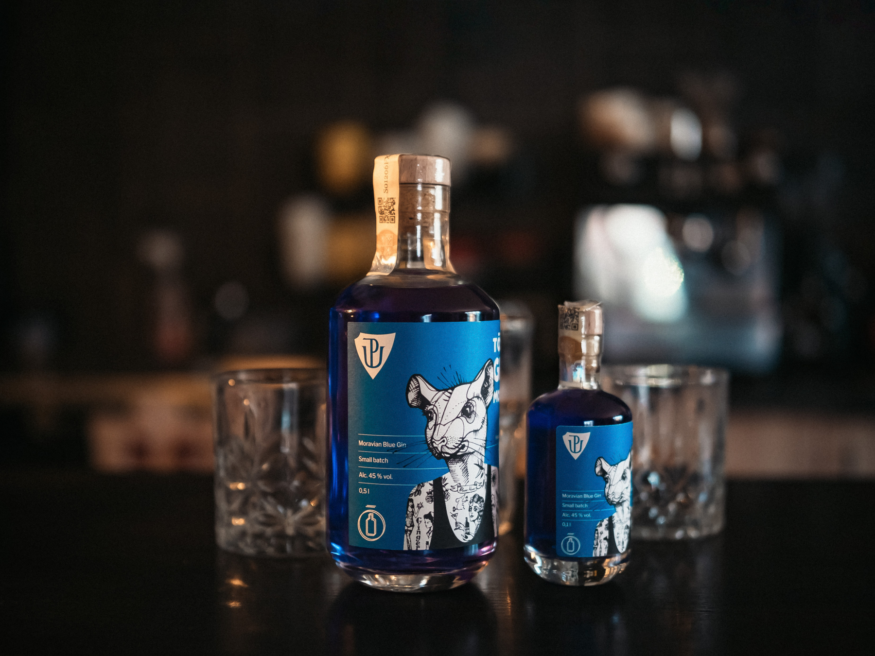Modrý gin vznikl na objednávku pro ostravský bar Modrá myš. Podmínka byla jasná – musí být modrý. Odmítl jsem ale umělá barviva, takže jsme hledali přírodní řešení. Nakonec jsme použili klitorii ternatskou.