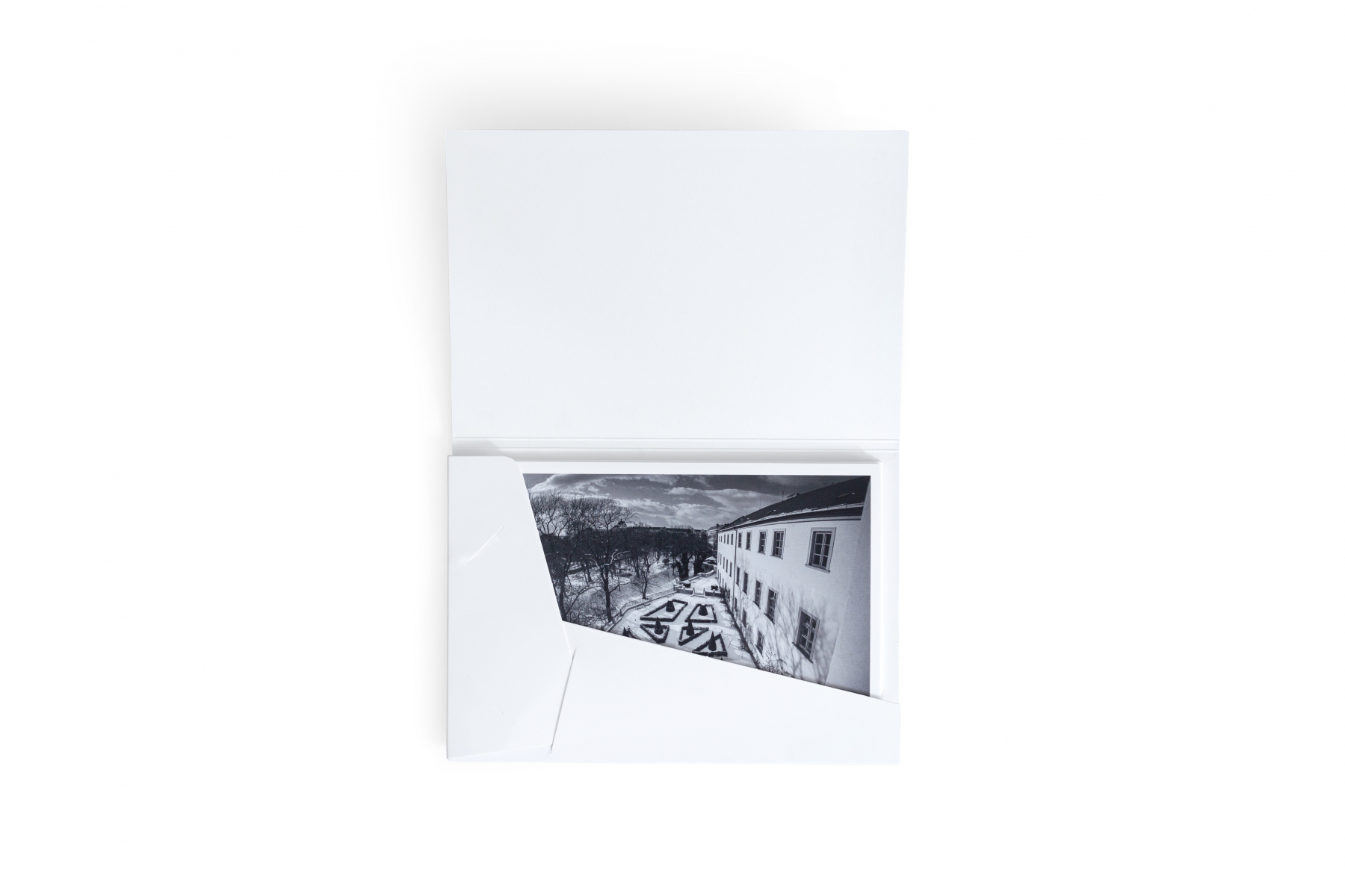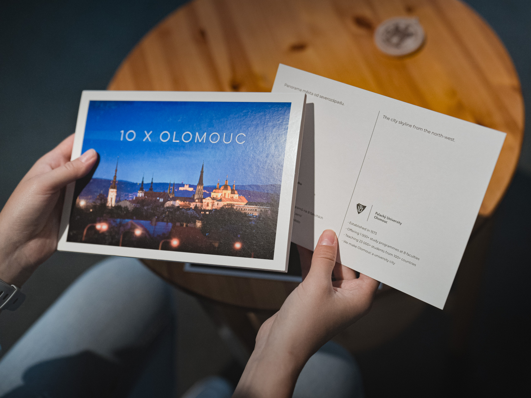 Na rubové straně každé „fotokarty“ je popisek vyobrazeného místa a logo univerzity, obojí v českém a anglickém jazyce.