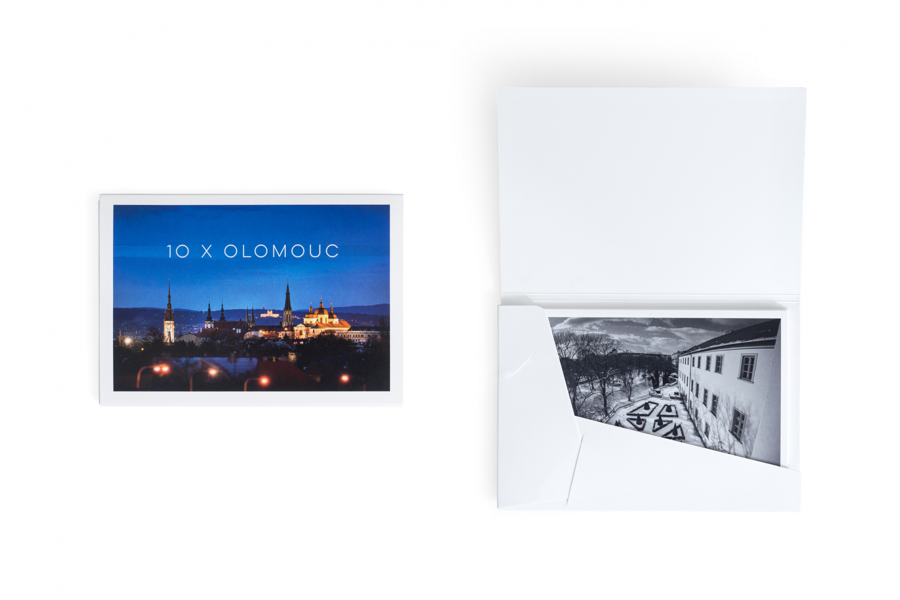 Složka deseti fotografií Olomouce tištěných na pevném papíře o rozměrech 21 x 14,5 cm.