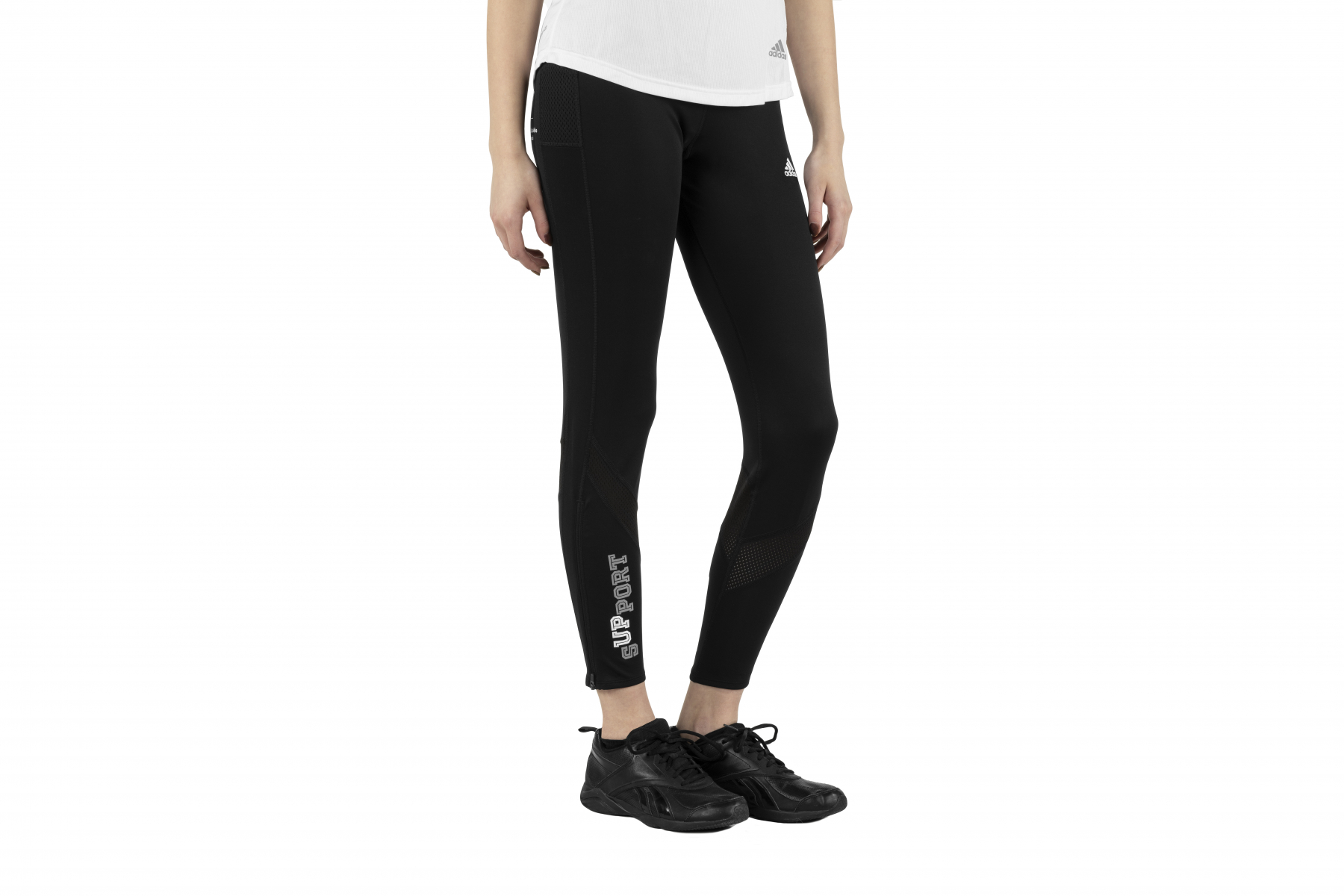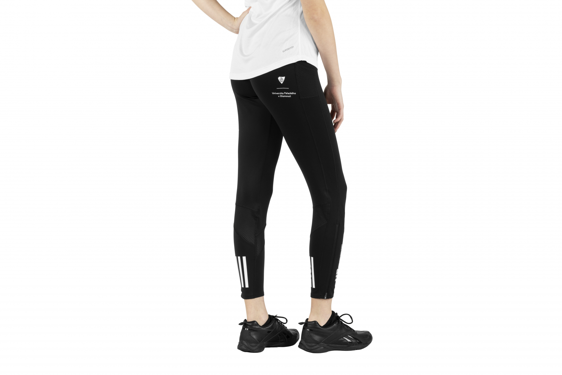 Dámské sportovní legíny s elastickým pasem a stahovací šňůrkou, reflexními prvky, kapsou se zipem na klíče či telefon v bederním lemu a s tvarovanými koleny.
