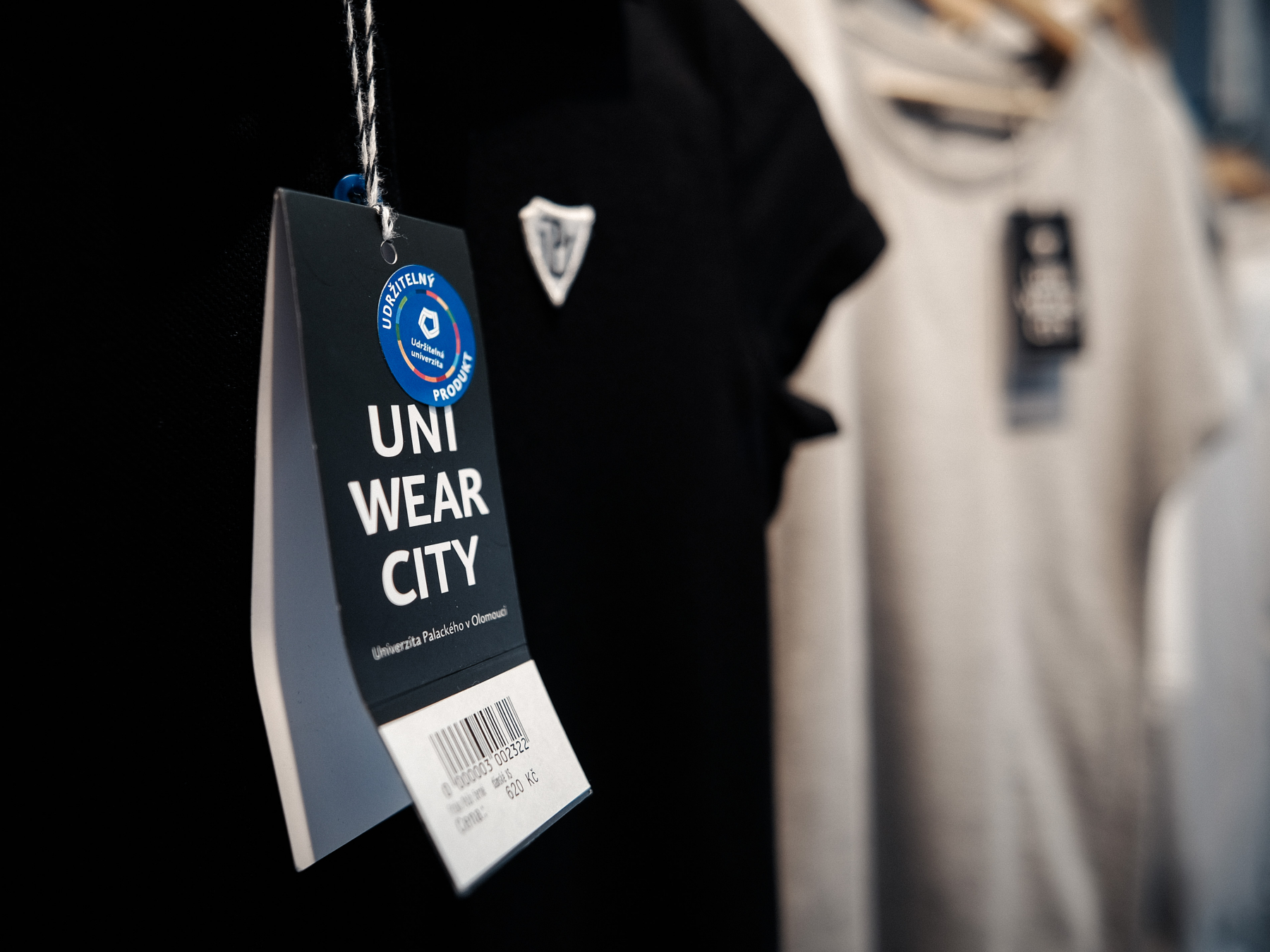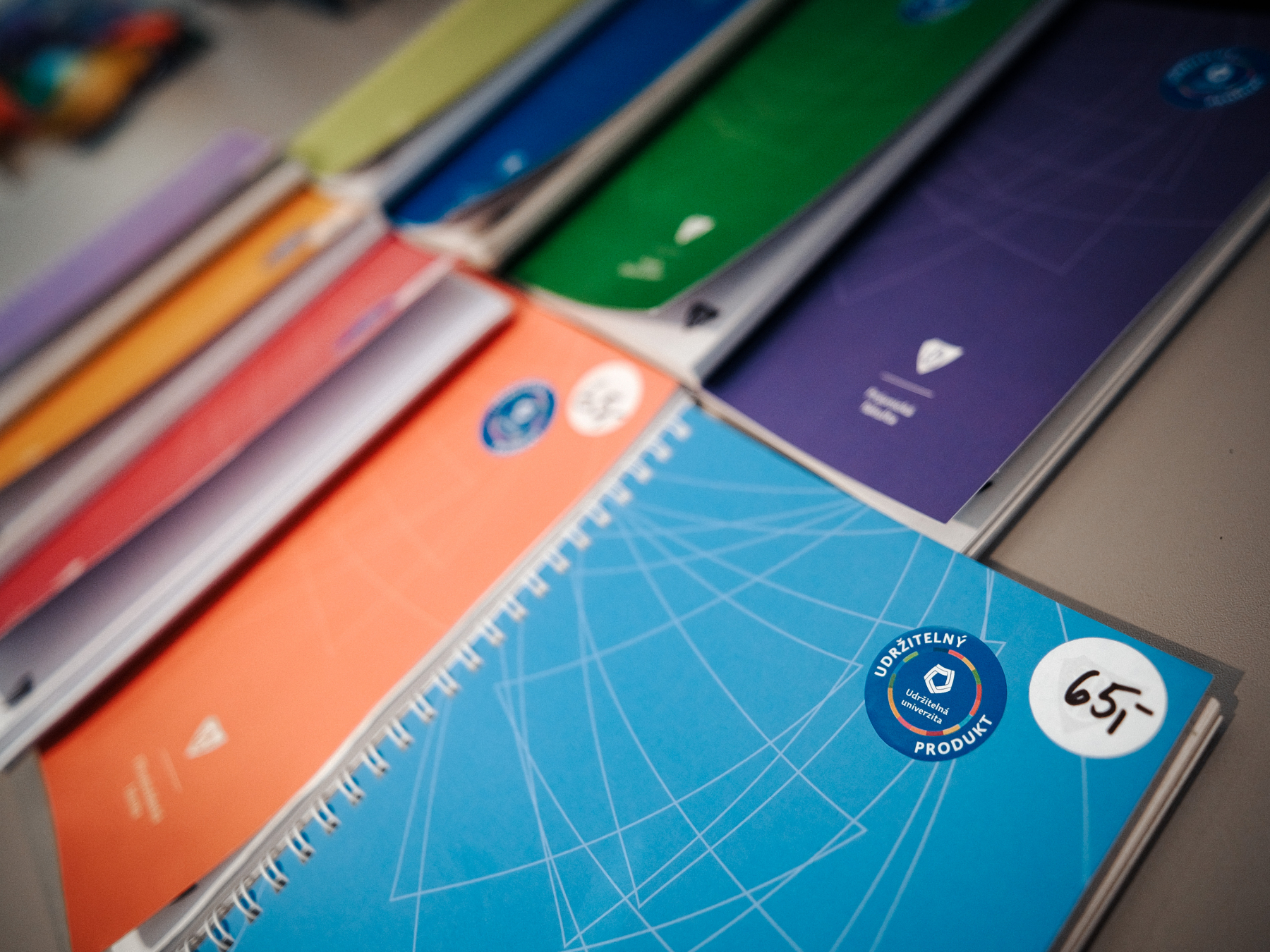 Pokud chcete udržitelným výrobkem udělat radost sobě nebo svým blízkým, hledejte v prodejně produkty označené nálepkou s logem Udržitelné univerzity a barvami sedmnácti cílů udržitelného rozvoje. Na e-shopu jsou ty nejudržitelnější produkty označeny stejným symbolem.